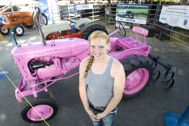 Sarah showing off her working tractor around town, and raising awareness for the Central Coast Cancer Support Community.